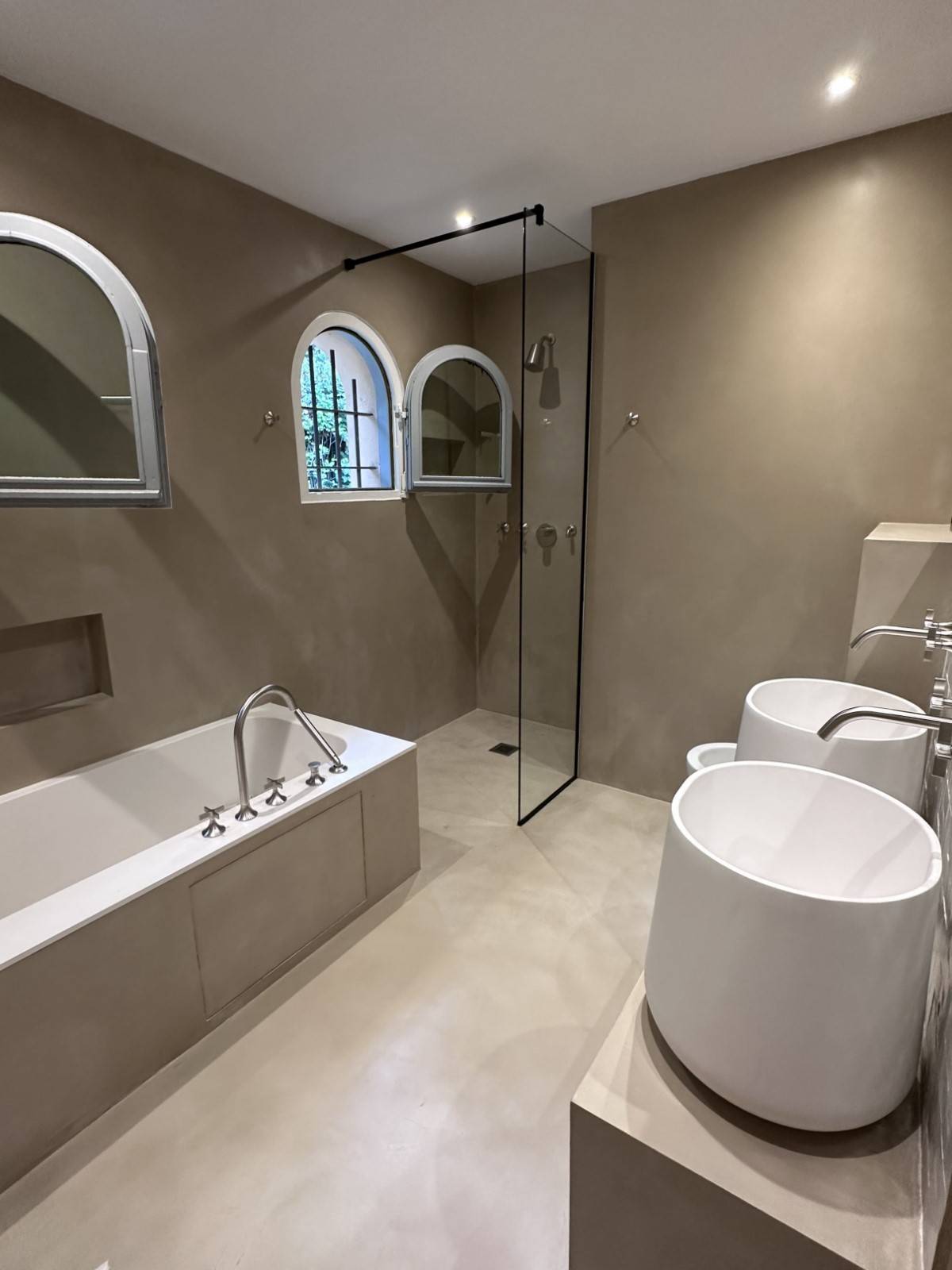 Rénovation d'une salle de bain avec l'utilisation de béton ciré dans la superbe localité de Saint-Paul de Vence crée un mélange harmonieux entre authenticité et modernité. Le choix du béton ciré pour sublimer les surfaces apporte non seulement une esthétique contemporaine, mais également une durabilité et une facilité d'entretien qui sont parfaitement adaptées à une salle de bain. Ce mariage entre tradition et innovation, teinté de l'atmosphère enchanteresse de Saint-Paul de Vence, promet une ambiance exquise et inoubliable.
